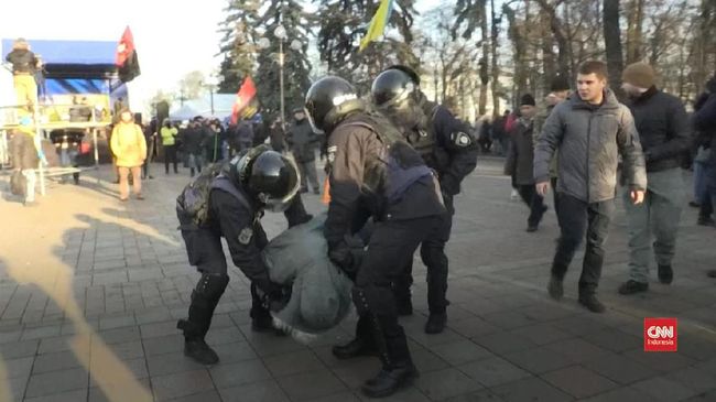Jakarta, CNN Indonesia -- Bentrok warga Ukraina dan polisi terjadi di luar gedung parlemen kota Kiev, Selasa (17/12) kemarin. Sekitar lima ratus warga melakukan unjuk rasa untuk memprotes rencana penjualan tanah pertanian kepada pihak asing.