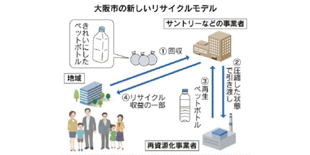 大阪市や大阪府がペットボトルの新たなリサイクル手法の普及やプラごみ削減につながる技術開発に力を入れている。市民や企業を積極的に巻き込み、力を借りるのが大きな特徴だ。2025年国際博覧会(大阪・関西万博)に向けて、世界的な課題の解決に貢献する姿勢を打ち出す。環境先進都市として関連産業の創出や持続的な街づくりにつなげる。