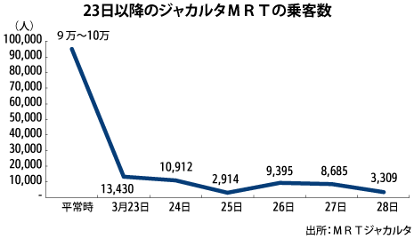 MRTジャカルタは当面、営業時間を午前6時~午後8時までに短縮する。また、車両1台当たりの定員を60人に限定、車内やホームで乗客同士が適正な間隔をとるよう呼び掛けるなど感染拡大防止策を取り入れる。