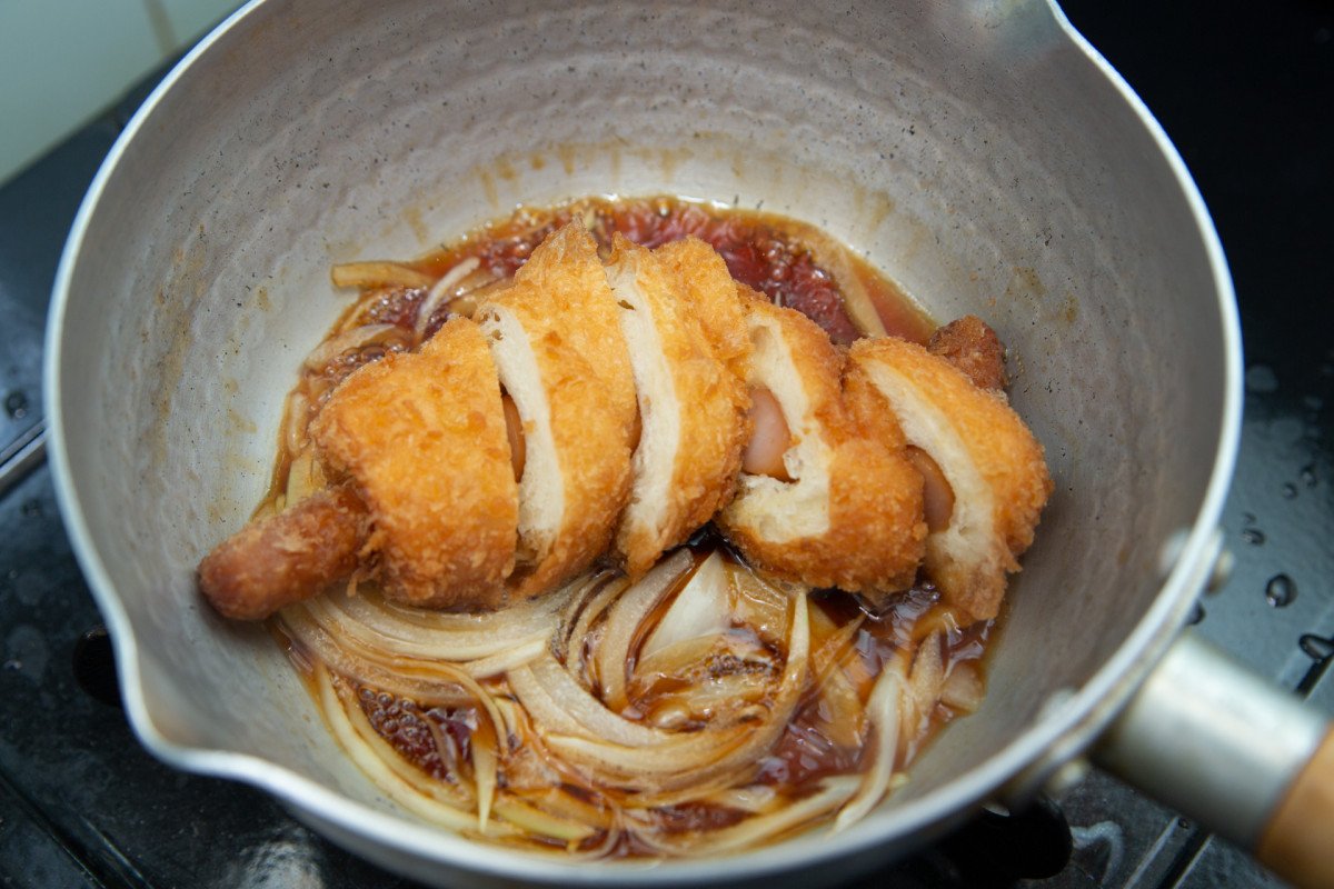 薄めたタレに玉ねぎ、そしてカツ。