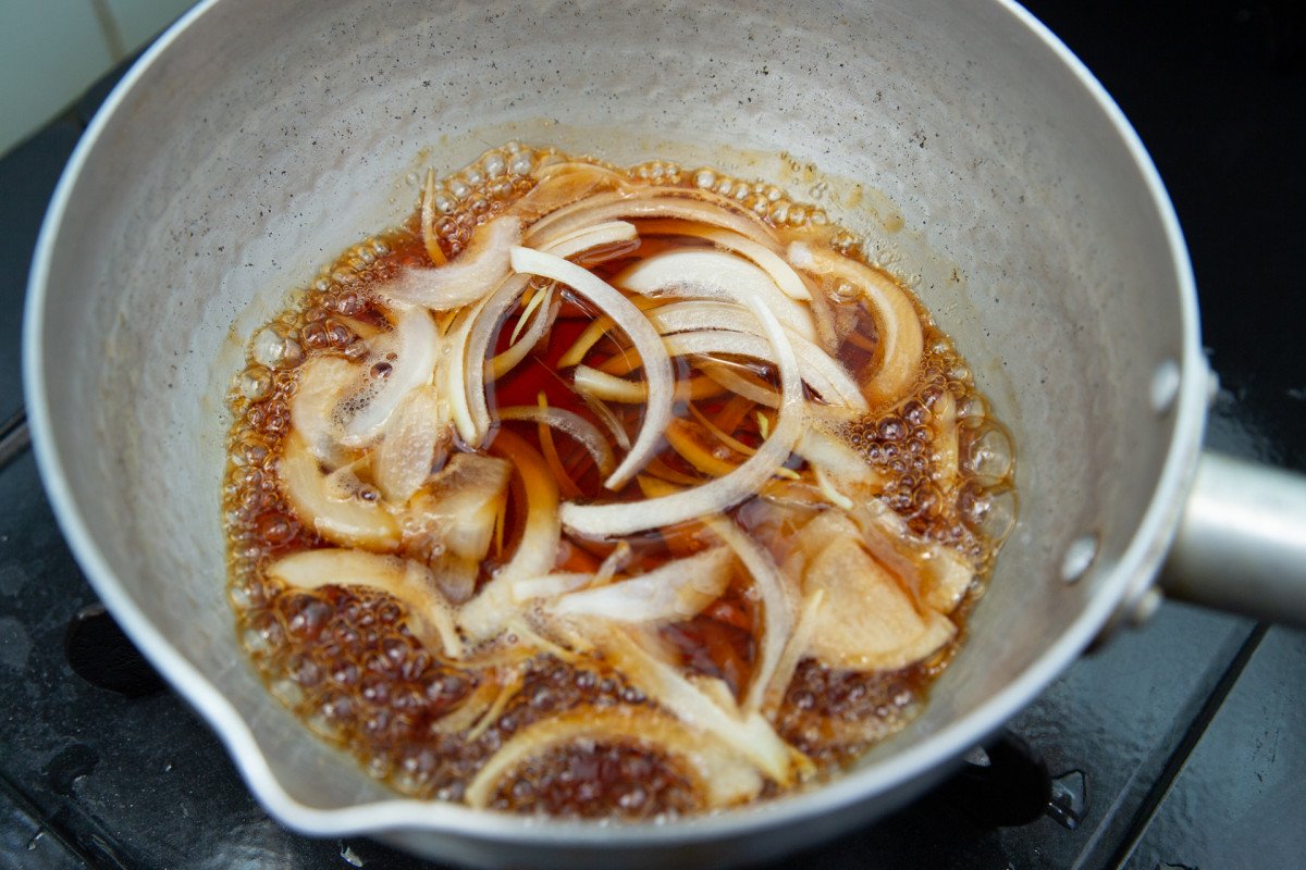作り方は以前と同様のかつ丼の手順ですが、今回はタレが違います。