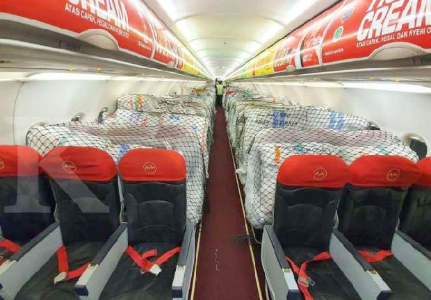 2日には、スラバヤから香港行きの貨物チャーター便を運航した。使用機材はエアバス320で、貨物搭載能力は11トン。旅客機の客室と貨物室の両方を使用した。