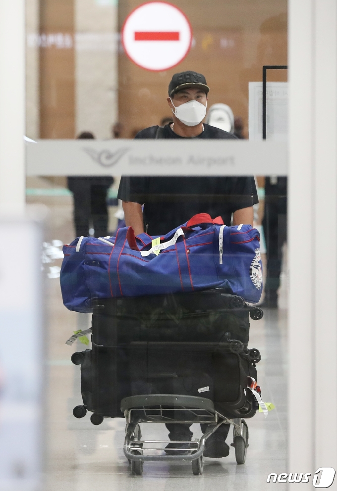 (인천공항=뉴스1) 이성철 기자 = 토론토 블루제이스 이적 후 첫 시즌을 마친 류현진이 2일 오후 인천국제공항을 통해 귀국하고 있다. 올 시즌 12경기 5승 2패 평균자책점 2.69를 기록한 류현진은 와일드카드 결정전 2차전 선발로 등판했지만 1⅔이닝 2피홈런 8피안타 7실점의 커리어를 기록하며 2020시즌을 마쳤다. 류현진은 귀국과 함께 2주간 자가격리에 들어간 뒤 내년 시즌 준비에 돌입할 예정이다. 2020.10.2/뉴스1
