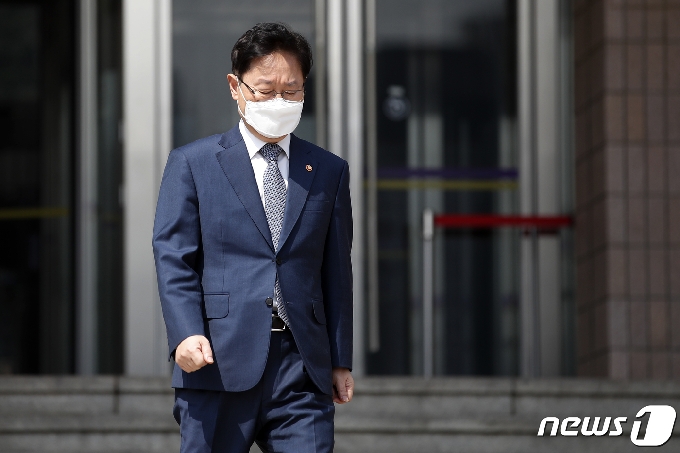 (서울=뉴스1) 이승배 기자 = 박범계 법무부 장관이 24일 오후 경기 과천정부청사 법무부를 나서고 있다. 2021.3.24/뉴스1