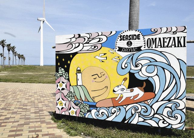 マリンパーク御前崎の広場と御前埼灯台遊歩道には、インスタ映えする撮影スポットの看板を設置している。(問)商工会=0537(86)2146