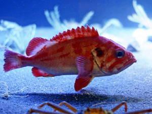 アクアマリンふくしまは、いわき市小名浜の同館で深海の高級魚「アコウダイ」を初めて展示している。生きている姿を見られるのは全国で同館だけという。