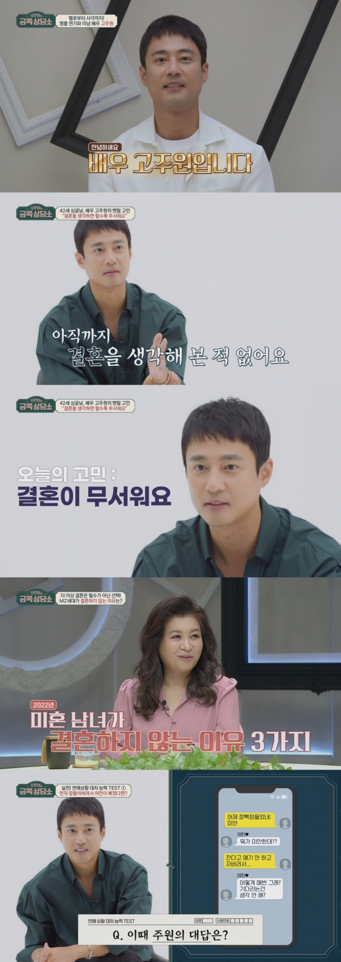 16일 오후 방송되는 채널A '오은영의 금쪽상담소'에는 고주원이 게스트로 출연해 고민을 털어놓는다.