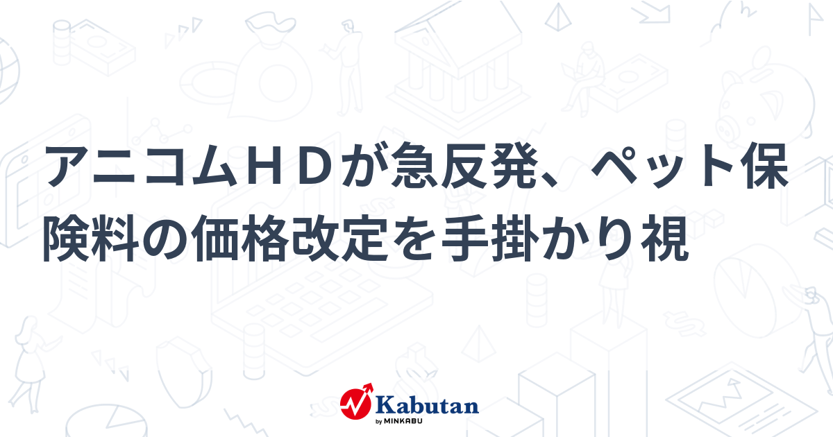 アニコムHDが急反発、ペット保険料の価格改定を手掛かり視 | 個別株 - 株探ニュース - 株探ニュース