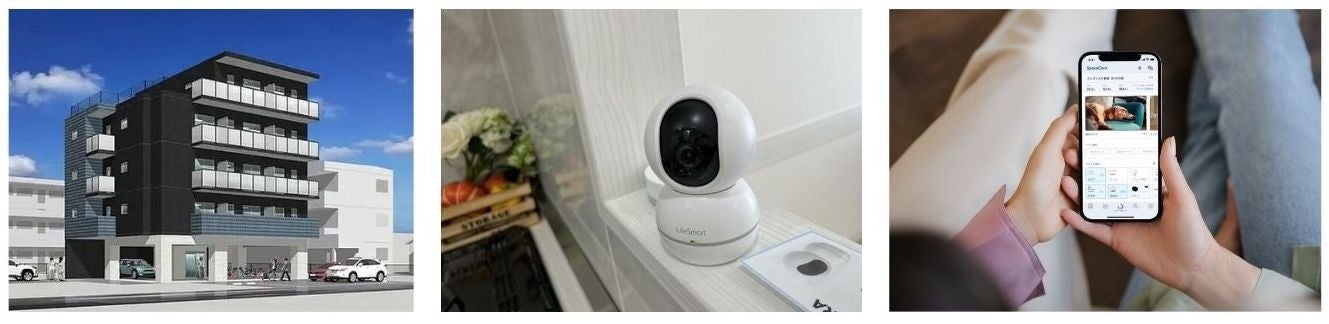 そのような現状に対して、川口不動産はペットと暮らす人々のためにペット共生賃貸住宅の提供を開始しました。共用部には足洗い場を設置し、専有部にスマートホームサービス「SpaceCore」を導入しました。「SpaceCore」では、見守りカメラや温度・湿度センサーなどの機器によってペットの遠隔見守りや部屋の空調の自動調節を行うことができ、入居者とペットがより快適で便利な生活を送ることができます。