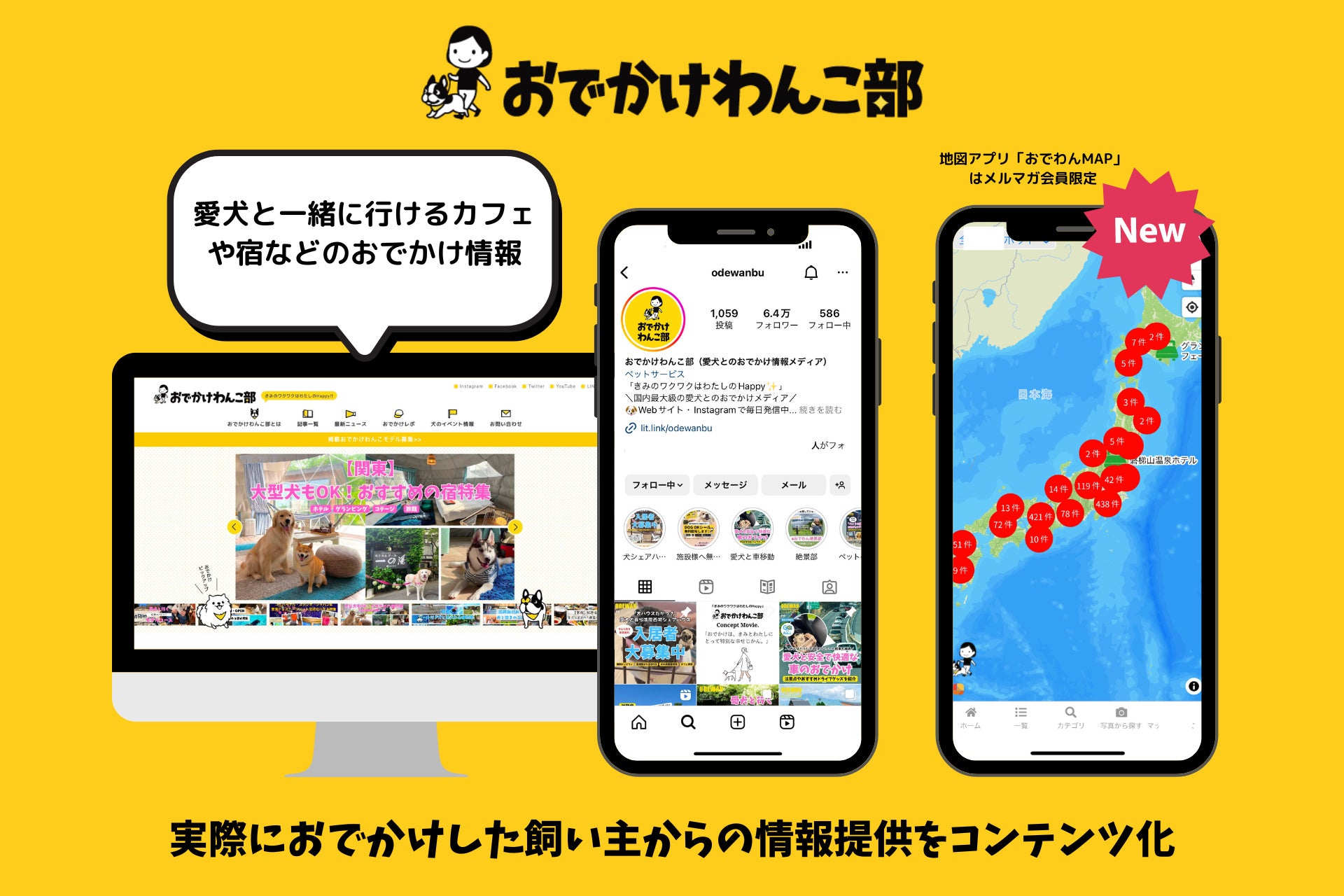 一方で、2019年7月にInstagram上でスタートした「おでかけわんこ部」は、ペットとの外出・旅行を楽しむコミュニティメディアです。現在総フォロワー数6.4万人、Webサイトの月間閲覧数は100万PVで、ユーザー目線でのワンちゃんとのお出かけ情報は、多くのペットオーナーから高い評価を得ています。