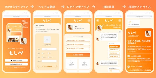 『もしぺ』は、あなたのペット専属の専門家AIがあなたのペットの個性や健康状態を学習し、まるでペット自身が語りかけるように、あなたの不安や悩みを聞き出し、最適なアドバイスを提供します。